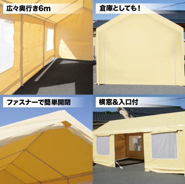 道具置き場、テントinテントの雨除けとして、6メートル☓3メートルのパイプ車庫を2つ購入します。基礎のブロックや床にするコンパネなどは市内のカインズホームで調達するとして、15万円。