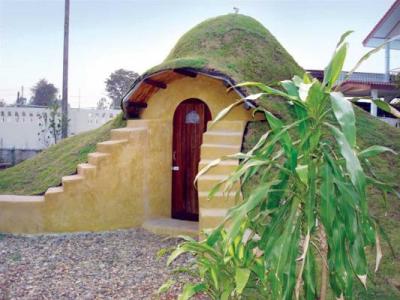 建築基準法により10㎡以内(6畳ぐらい)の家しか建てられないので、アースバックの材料費、天窓を付けるとして2棟分で30万円。アースバック工法の家は、500年は持つと言われてます。