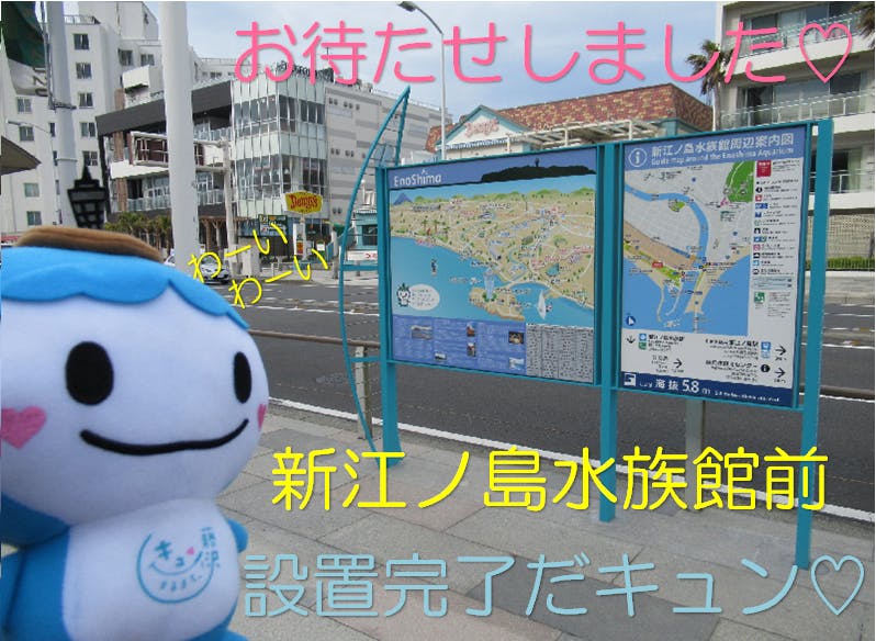 観光案内サインが設置されれば、今よりもーっと、藤沢のまちに来てくれる観光客が気持ちよく観光を楽しめると思うキュン♡ そんな「おもてなし」のまちづくりの一つをぜひみんなに協力して欲しいキュン♡