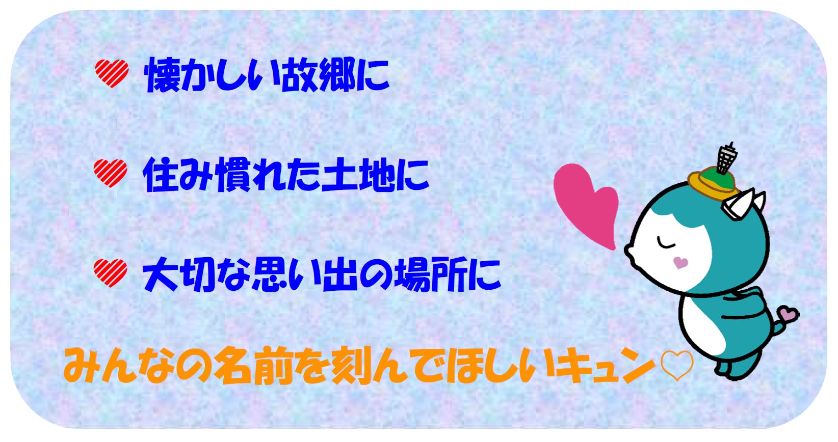 設置されたら、自分の名前が刻まれた観光案内板をぜひ、見にきてほしいキュン♡