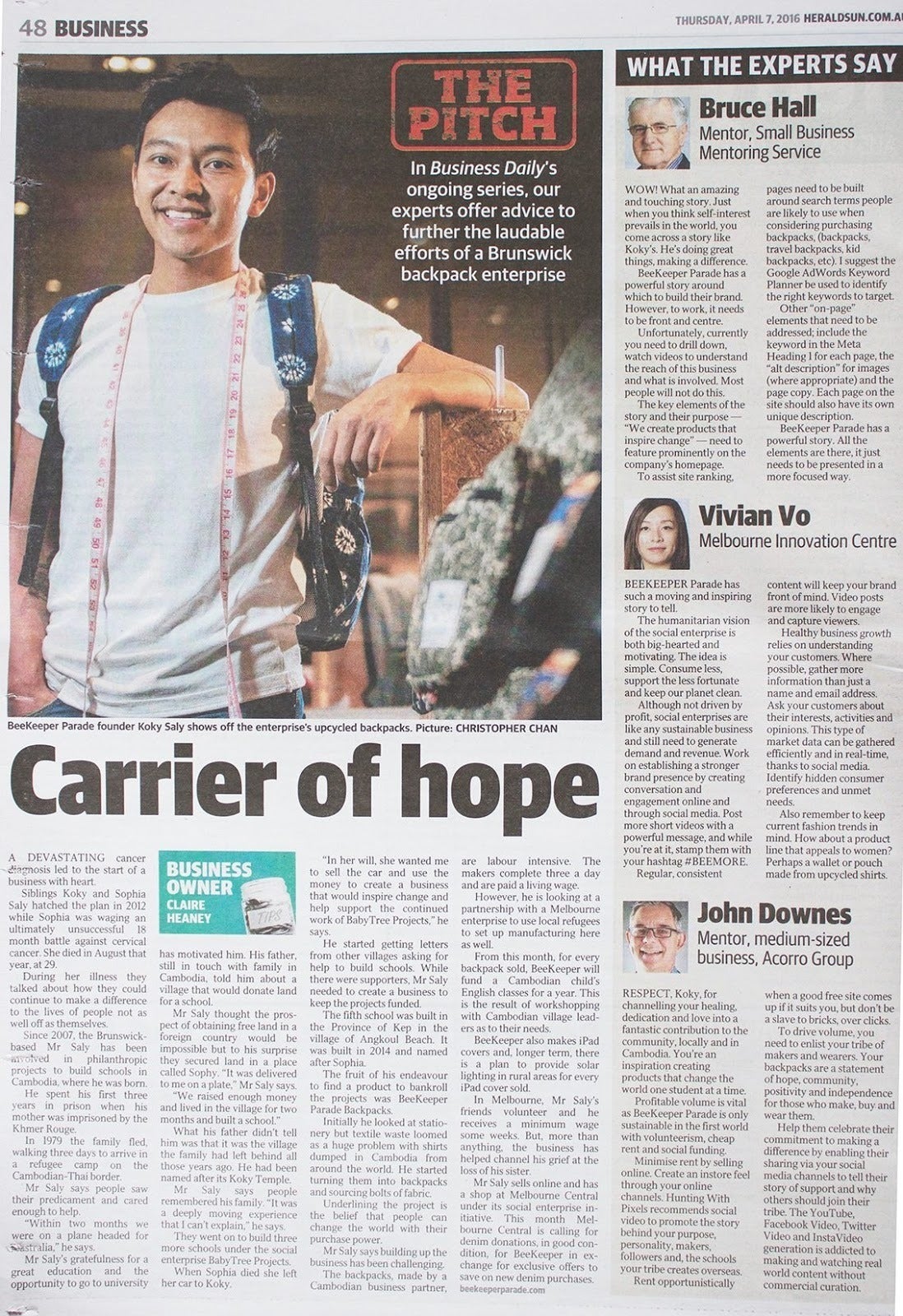 カンボジアから難民としてオーストラリアに移住した兄(コーキィ)と妹(ソフィア)によって2012年に立ち上げられたカンボジアの子どもたちをサポートするソーシャルビジネスがビーキーパーパレードです。