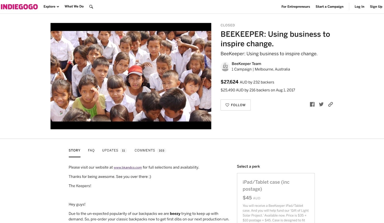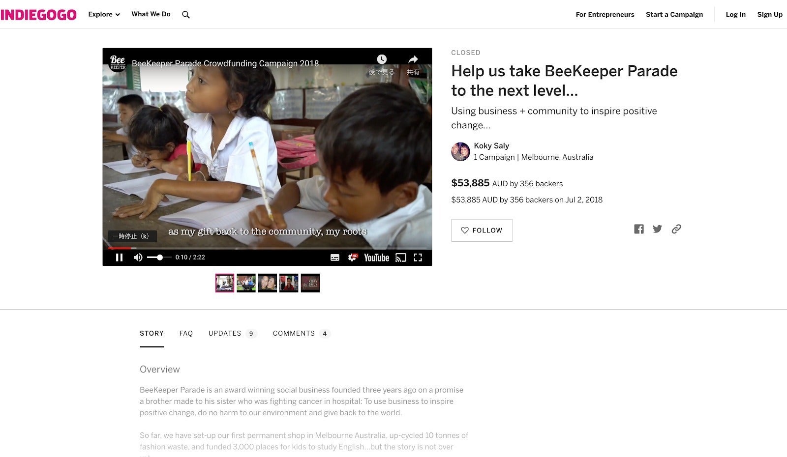 オーストラリアではこれまでに2度クラウドファンディングを開催。たくさんの方のサポートに支えられてビーキーパーパレードの今はあります。合計で81509オーストラリアドル(日本円でおよそ600万円)のご支援を頂きました。ストーリーに共感してくださった、たくさんの支援者の方々のおかげでこれまで活動をしてくることができました。