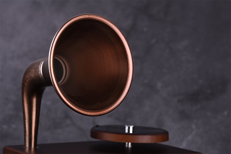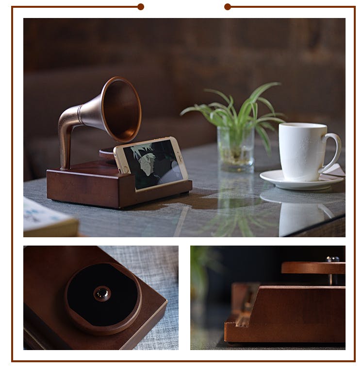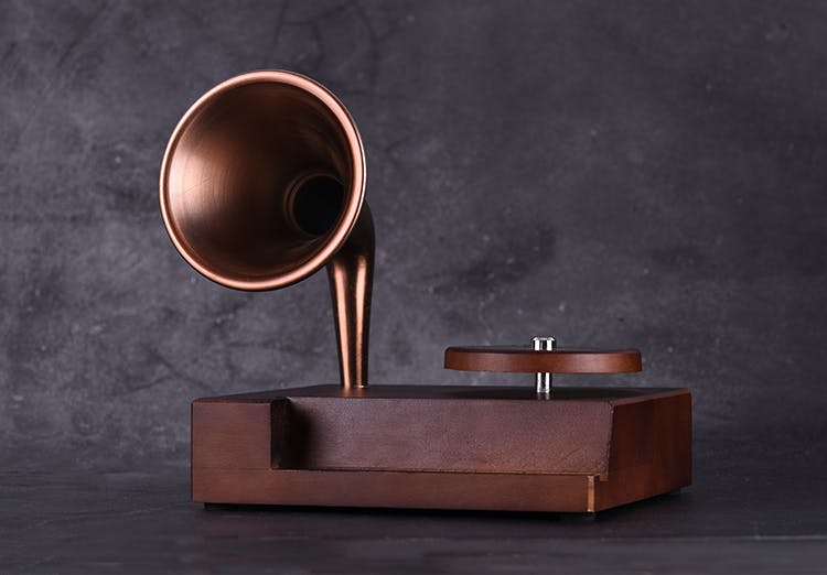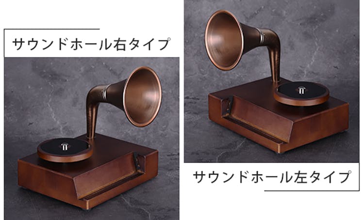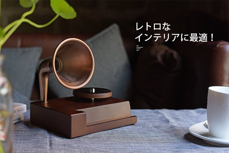 さまざまな良い音を引き出す仕組みが凝縮された「ホーン効果」こそが、「蓄音機」デザインにこだわる大きな理由です。