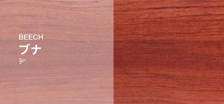 しっかりと乾燥させたブナは耐久性が強く、優れた加工性と割れにくい性質から脚物家具、床材など、様々な用途に使用されています。