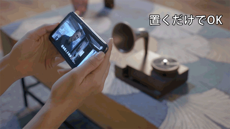 APP、Bluetooth、アダプタなどなにも必要なく、電源を入れる必要もありません。必要な作業は「スマホをスマホスロットに置く」ただそれだけ。