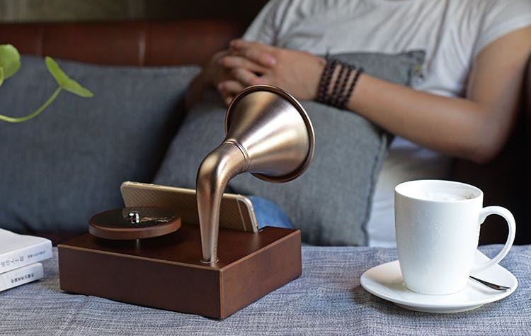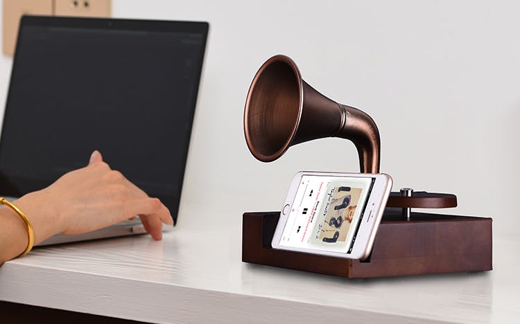 「スピーカーを使いたいけれどAPP操作やBluetoothの設定なんてよく分からない」そんな人も安心、「蓄音機風無電源スピーカー」はデジタル要素一切なし!