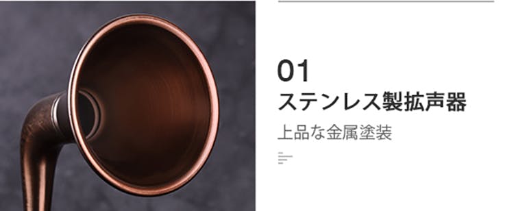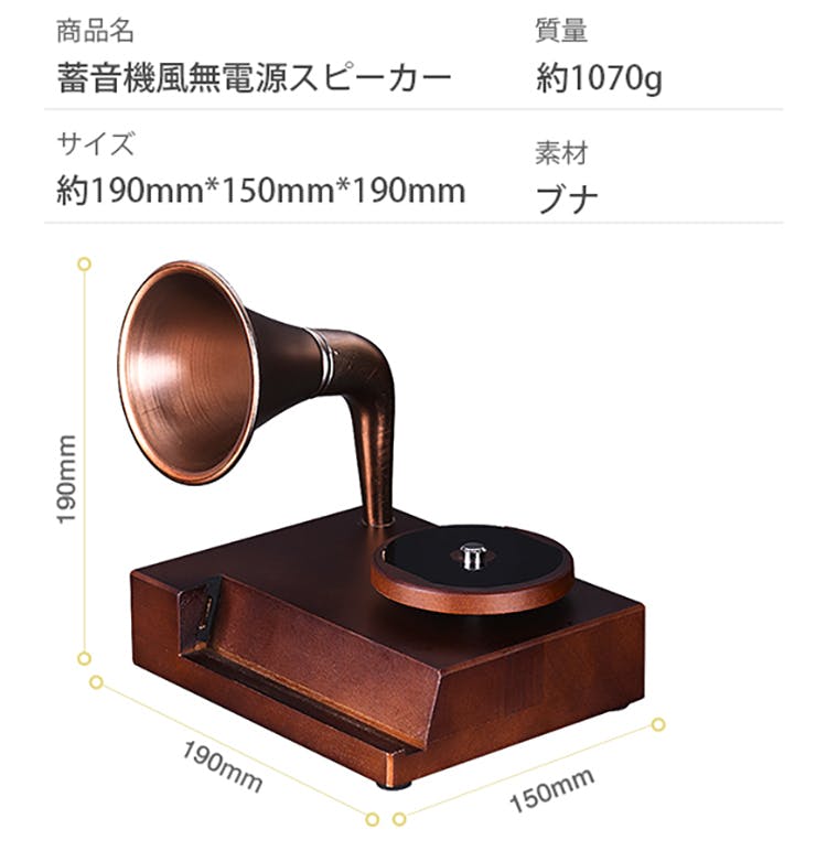本商品「蓄音機風無電源スピーカー」は、そのシンプルさを忠実に再現しました。