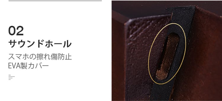まずは、スマホスロットにあるサウンドホールによって、スマホから出る音を拾い上げ、拡声器に届けます。