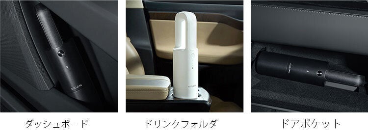 ダッシュボードやドリンクフォルダ、コンソールサイドポケットにもスッキリ収納できます。わざわざトランクを開けて引っ張り出す必要もありません。コンパクトで1台備えておけば、いざという時に活躍します。