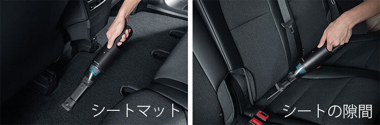 車内や室内で、狭い場所や手の届かないスペース、車のカーペットの頑固な汚れ、柔らかい家具の表面なども簡単に掃除できます。