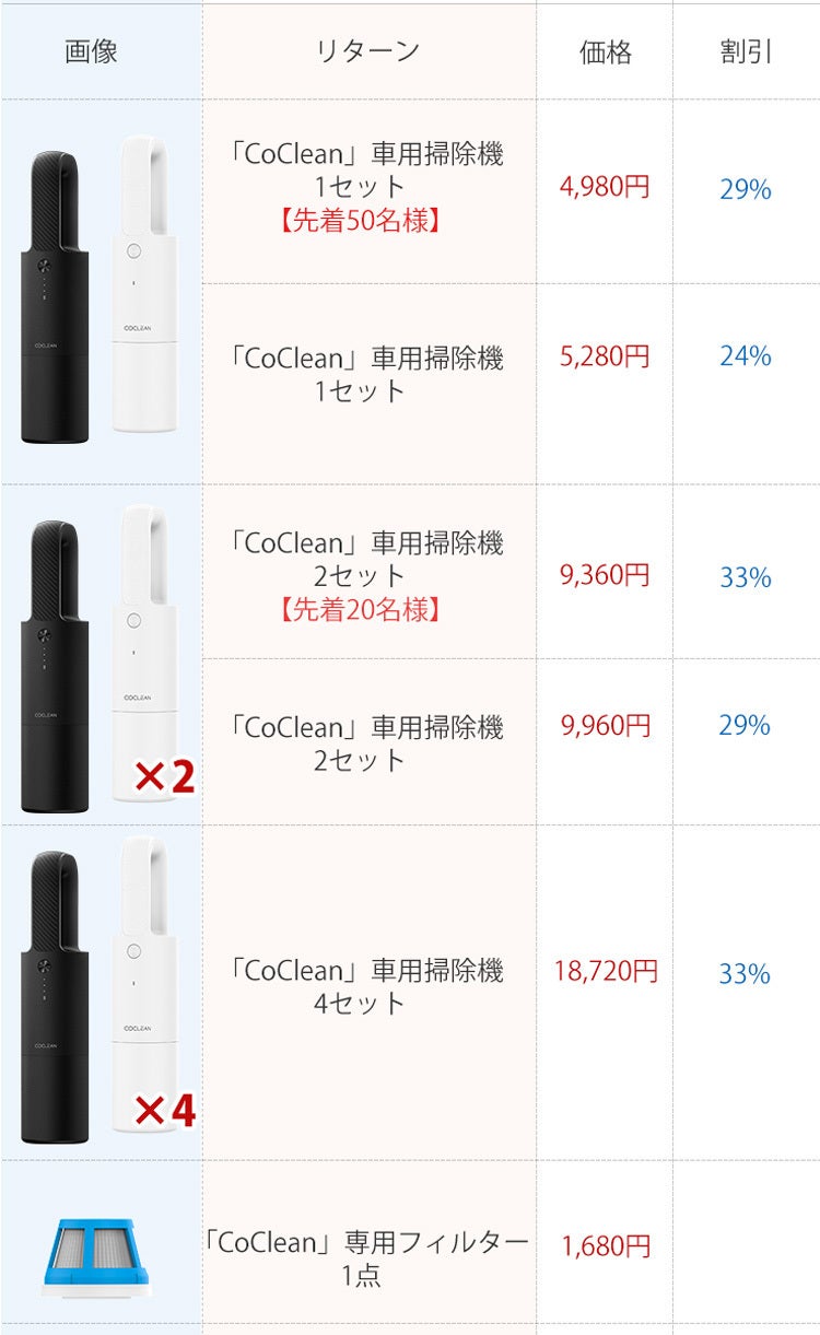 2020/02/10 12:44ご支援いただいた皆さま、こんにちは。雲集商事株式会社でございますこの度、軽量かつ優れた吸引力!5800paハイパワーコードレスクリーナーCoCleanをご支援頂き、ありがとうございます。本プロジェクトリターン商品の発送は予定通り、今週中に皆様宛に行いますが『住所記載ミス』や『引っ越し』等で、商品戻りが発生しております。円滑の商品をお届けさせて頂きたいので今一度、配送先の住所確認のご協力をお願いします。お申し込み時にご指定いただいた配送先は、マイページよりご確認いただけます。変更があった場合は、マイページより住所変更の手続きをお願いします。今後ともをよろしくお願いいたします。 もっと見る