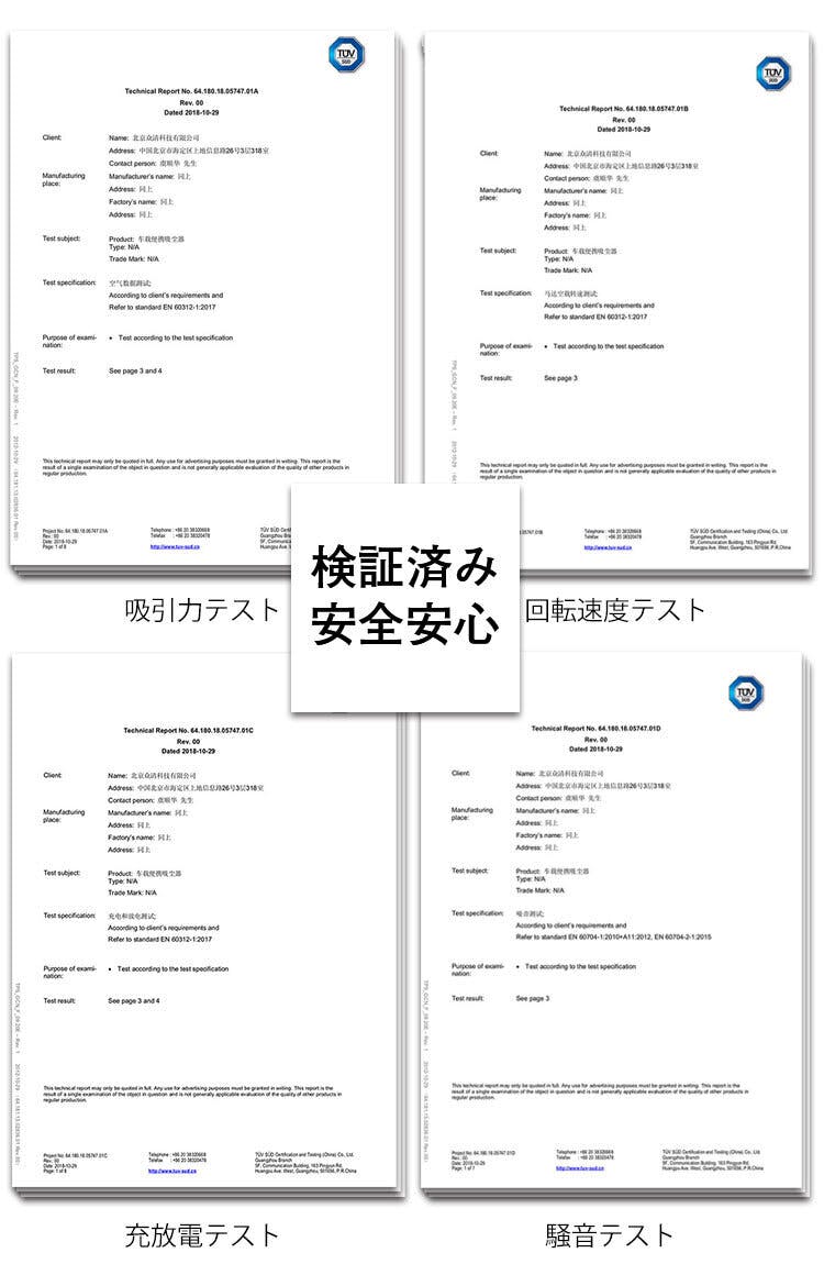 重要なポイントである吸引力、回転速度、充放電、騒音の検証テストを繰り返し実施しました。「強い、早い、静か」全ての部門で高い数値を実現することに成功したバランスの良いプロダクトです。