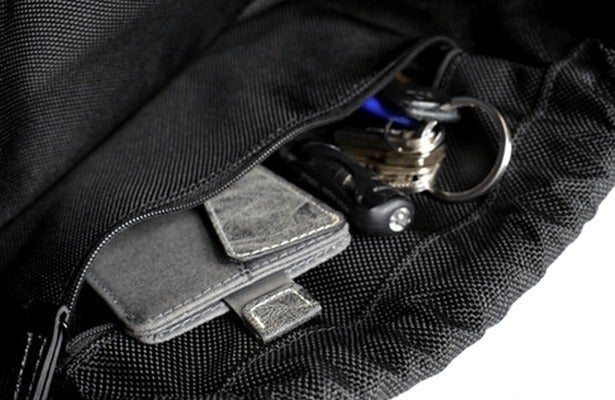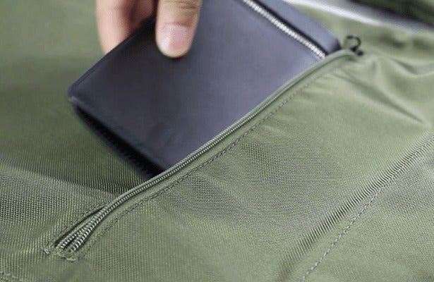 パスポートやスマホ、財布、カードなどの貴重品などもバックパックを背負った際に、背中部にある収納スペースに納めることができて、簡単に手の届く所に配置されています。