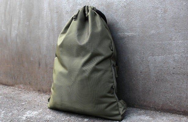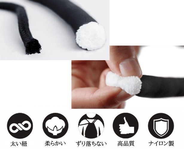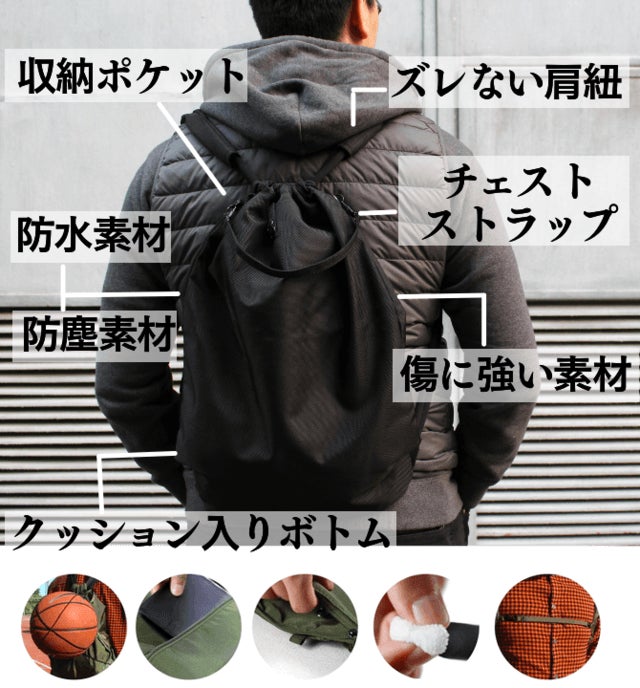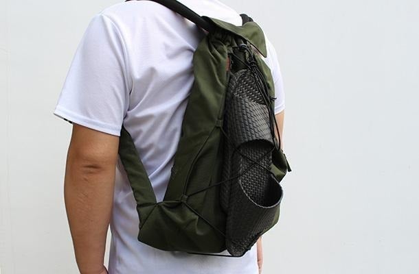 このようなシンプルな形状では肩から紐が落ちやすく、また沢山モノを入れると肩への負担が大きくなるのが一般的。そんな課題を極太設計の2本ロープを採用することで解決し、肩の負担も和らぐようになっています。