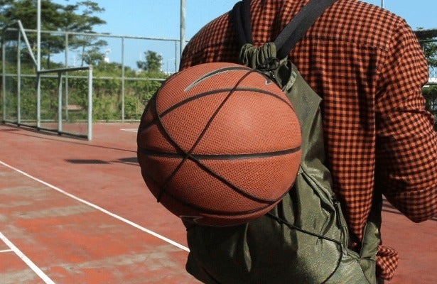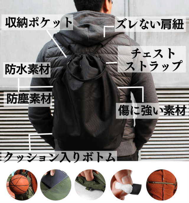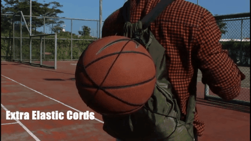 外側には伸縮性コードも付属。バスケットボール程度の大きさや重さなら簡単に挟むことだって可能。