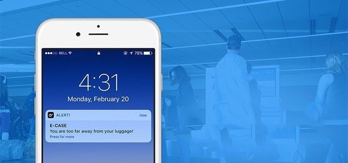 心配無用!E-Caseは、Bluetooth信号の範囲外に迷った場合にアラートを送信します。次に、リアルタイムGPS信号を使用して荷物を追跡します。