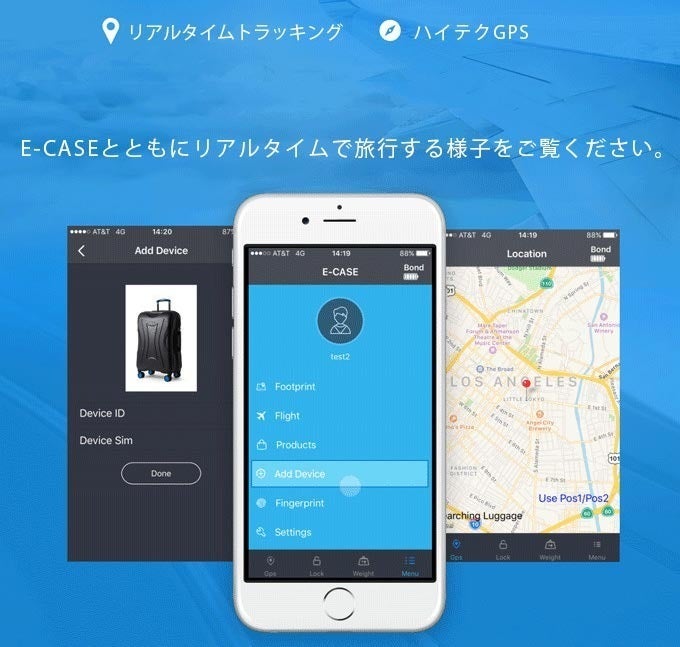 E-CASEはキャリーバッグ市場で最も正確なリアルタイムGPSシステムを搭載しています