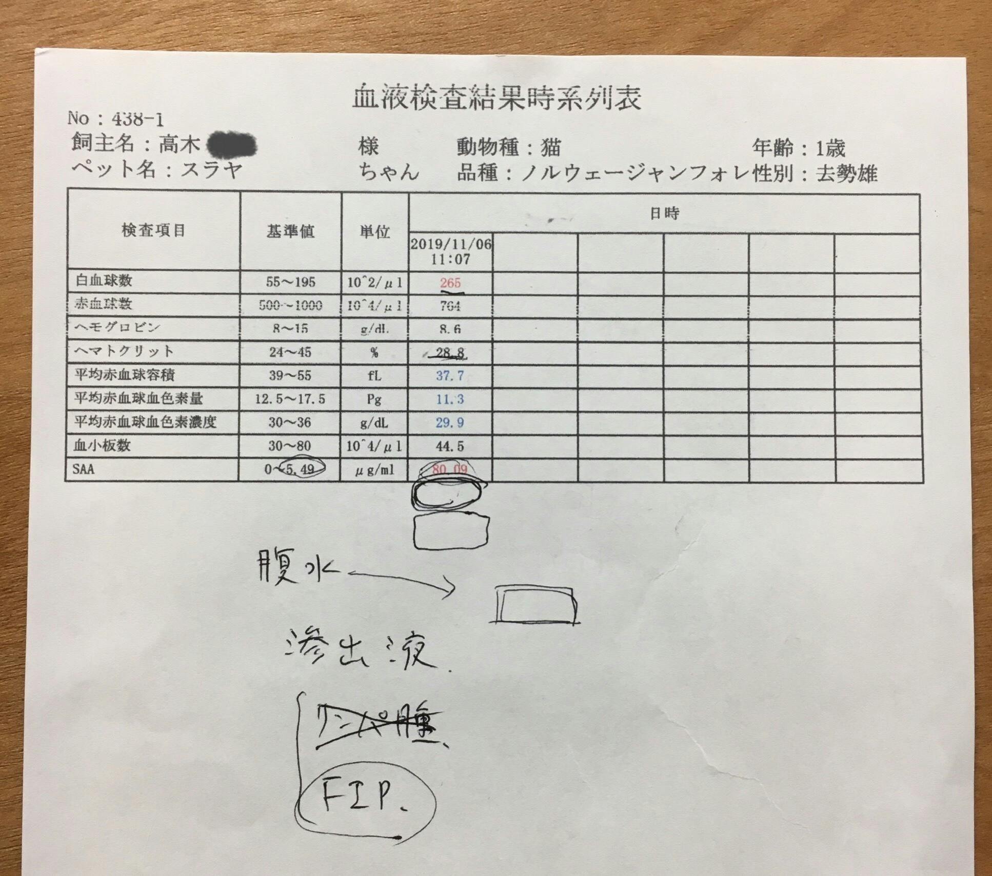 初期段階でFIPの診断を受けることができたのは奇跡的です。