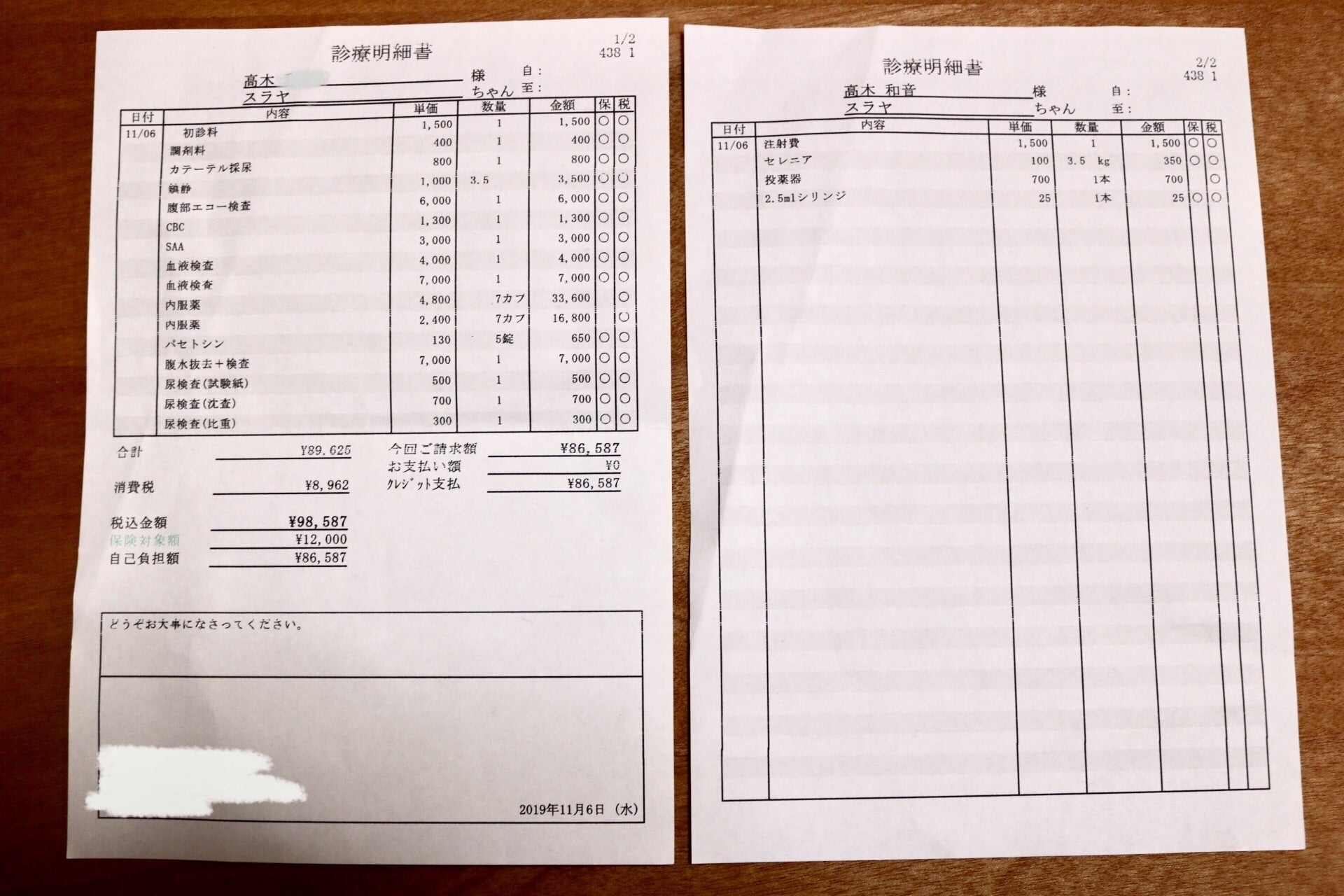 そしてそれを最低でも約12週間(薬の効果が得られた場合、12週間後の血液検査の結果で投薬を終了することができるそうです。)続けると、約60万円強、の金額になります。そこに、血液検査、エコー、腹水検査、交通費、など、様々なお金がかかってきます。街のケーキ屋のお給料では、とてもぽんと出せるような金額ではありません。保険に入ってはいますが、1日の限度額が12000円と決まっており、MUTIANについては未承認の薬のため、保険適応外となっています。