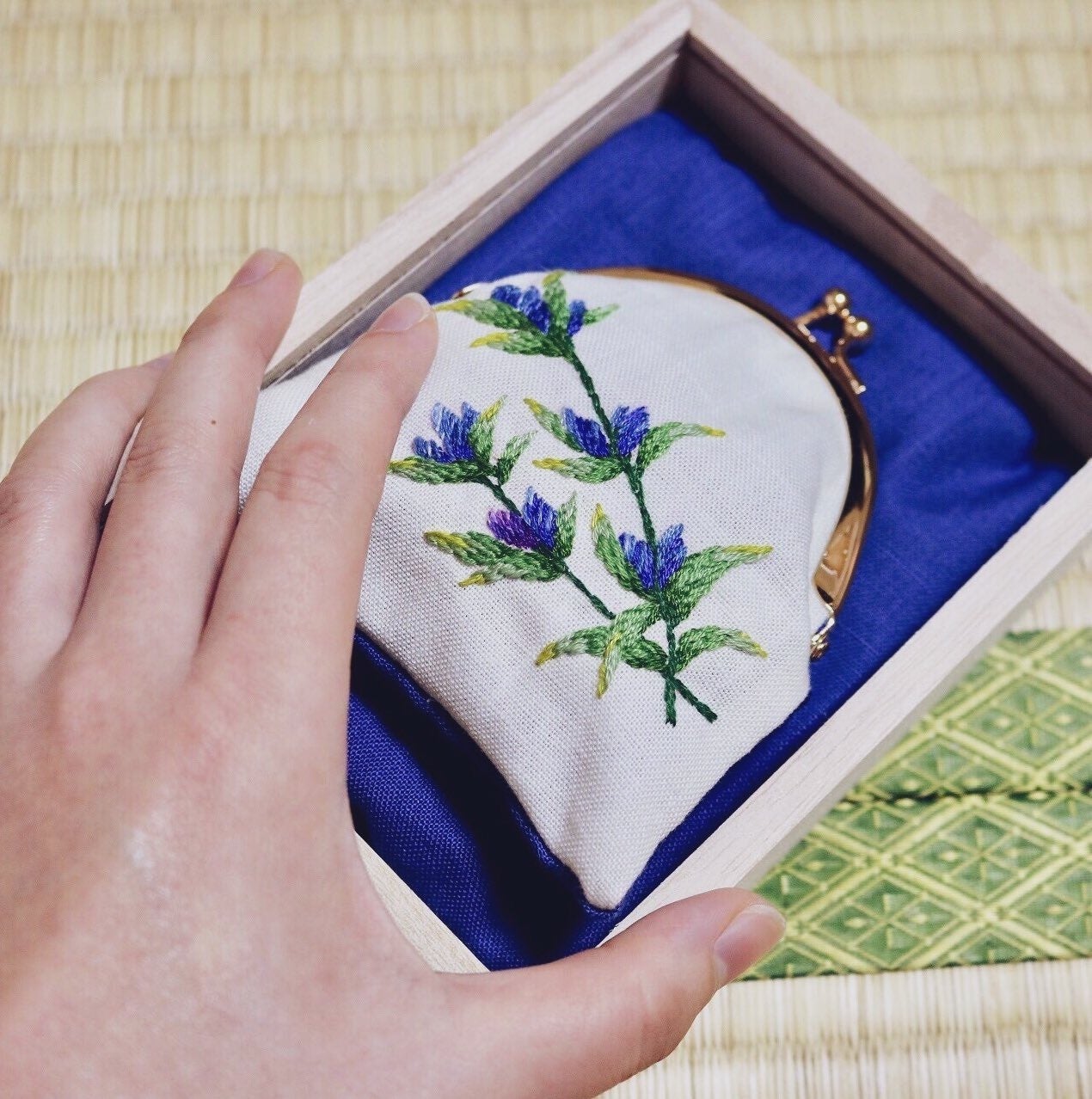 昔作ったがまぐちです。りんどうです。