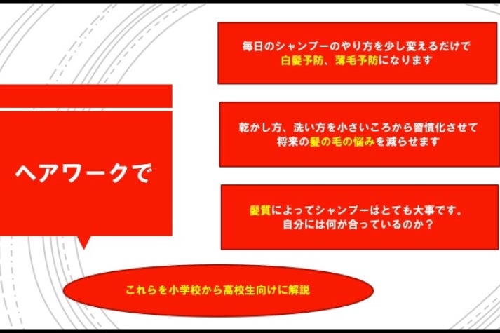 美容師さん以外の方に髪の毛の話をしたいと考えた時に学校の特別授業を設けさせてもらえれば意識改革が出来るのでは?と思いこちらに投稿させて頂きました。