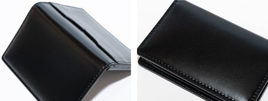 革靴で使用される技法の肉盛りを名刺入れに利用。