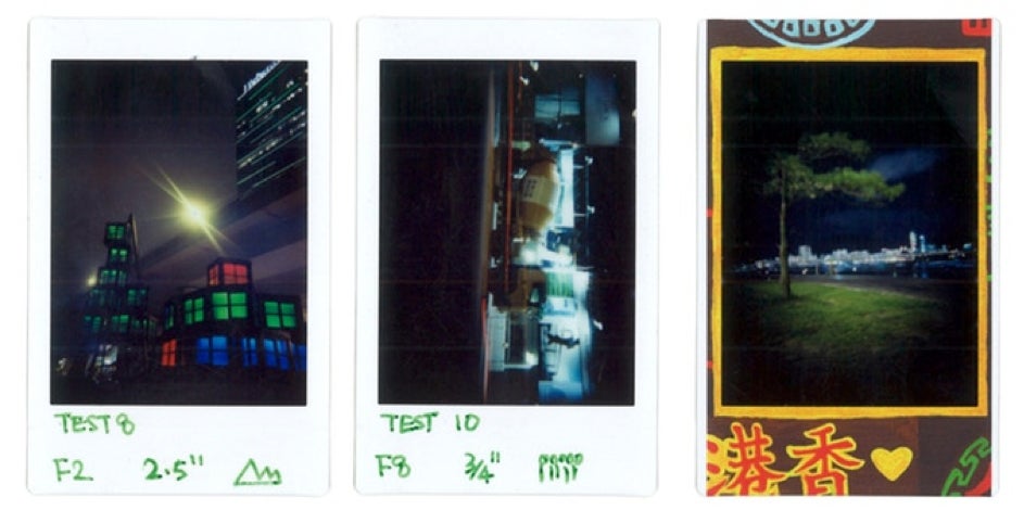 特殊効果のテスト撮影:(左)多重露光撮影 (右)長時間露光によるライトペインティング撮影