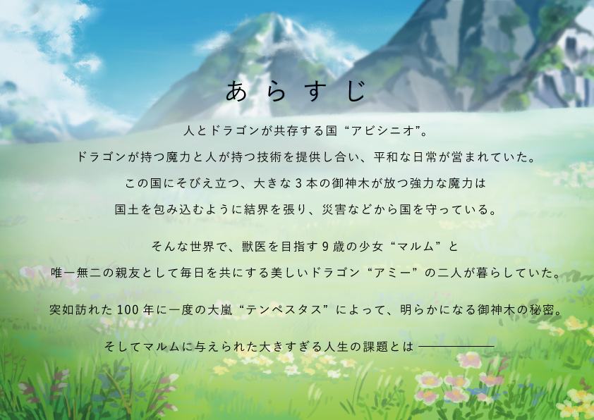 その世界の中で、主人公の少女が、ドラゴンであるかけがえのない親友との体験を元に成長する姿をテーマに脚本を書きました。