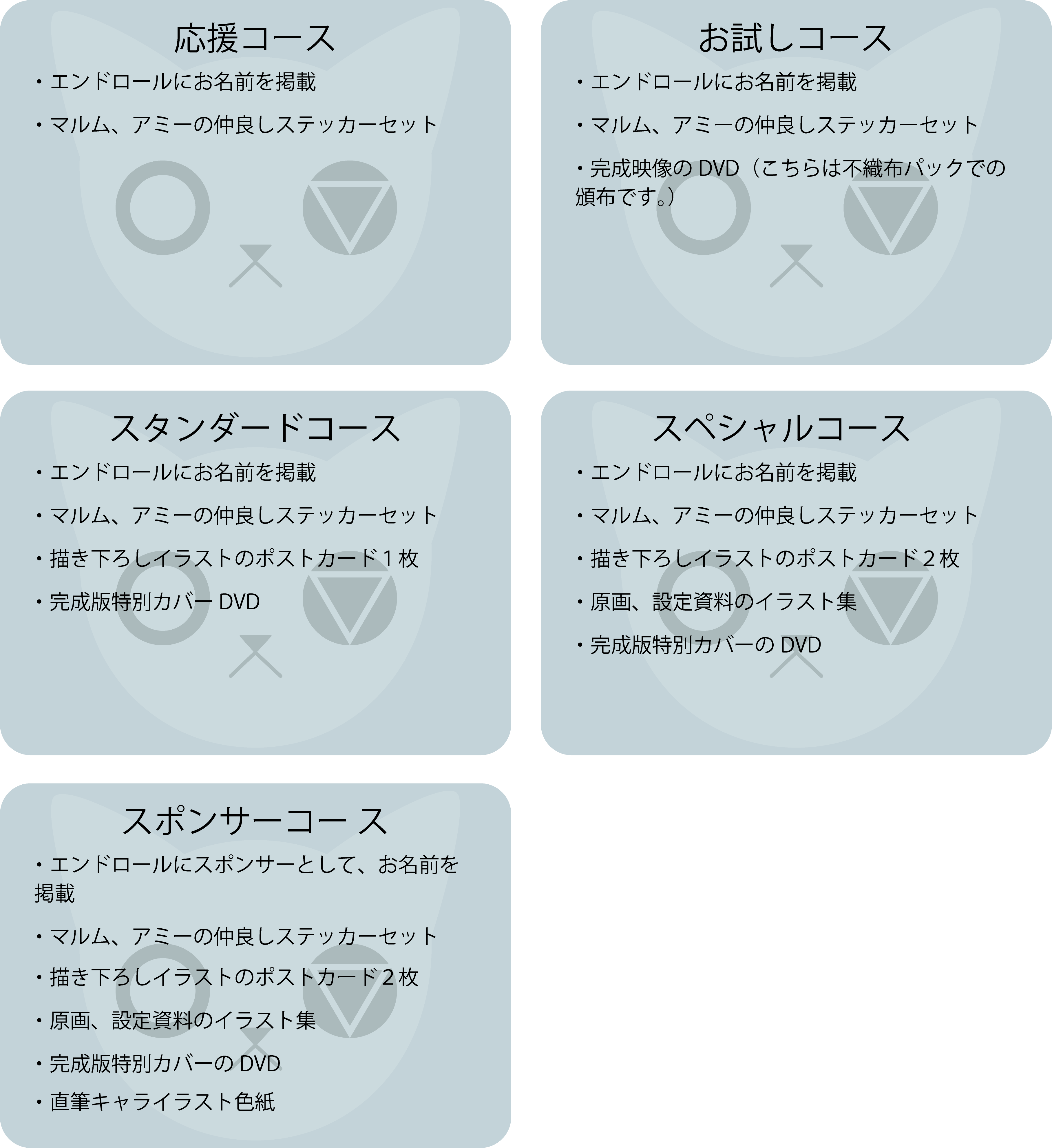 アニメ制作には、多くのスタッフ、また制作のための環境が必要になります。学生の力だけでは限界があるところを、みなさんのお力を貸していただけましたら、大変嬉しく思います。
