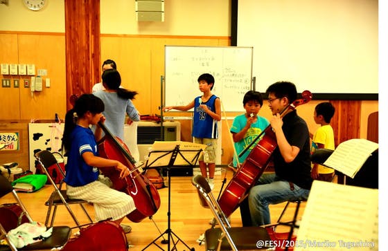 一般社団法人エル・システマジャパンでは、福島県相馬市や岩手県大槌町との協定のもと、現地での様々な音楽活動に対して支援を行っており、そのうち相馬市の子どもたちが参加する「相馬子どもオーケストラ」では、毎週土曜日・日曜日に週末音楽教室という弦楽器の子どもたちの練習を行っています。