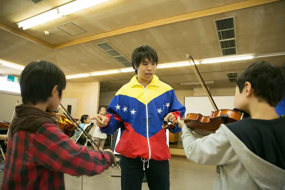 気づけば、その1週間後には相馬で現地の子供たちやベネズエラ人音楽家と一緒にバイオリンを弾いており、フェローの一員になっていました。笑