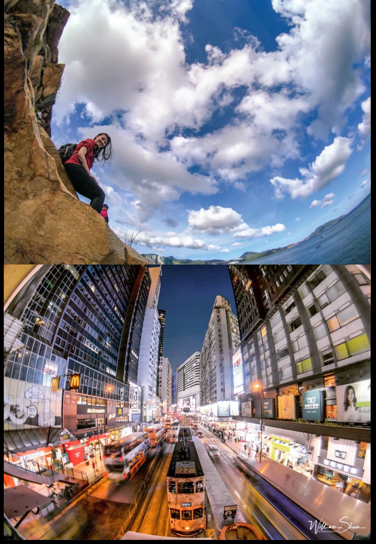 フィッシュアイレンズなしで撮った写真(左) vs. フィッシュアイレンズで撮った写真 (右)