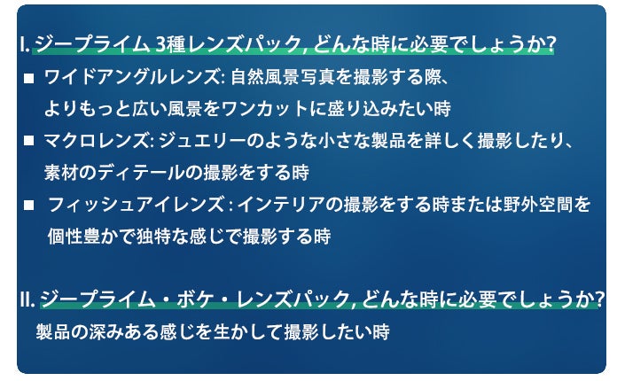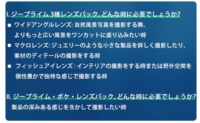 ジープライム 3種レンズパック, どんな時に必要でしょうか?