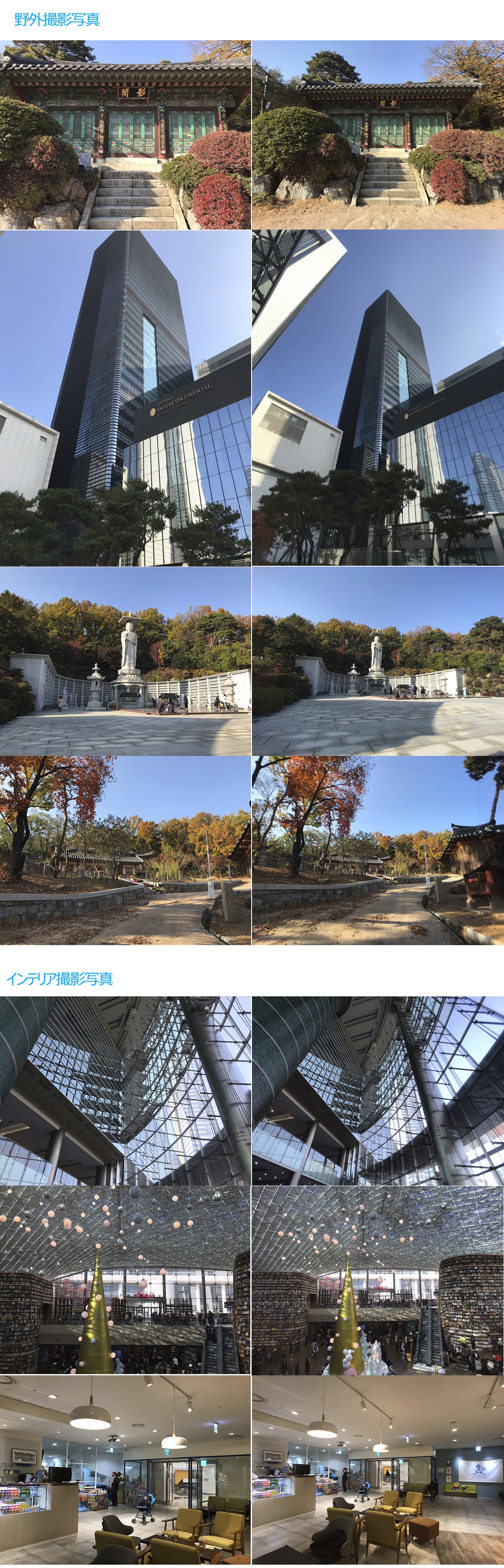 - ■フィッシュアイレンズ (Super Wide Angle lens) : インテリアの撮影をする時または野外空間を個性豊かで独特な感じで撮影する時