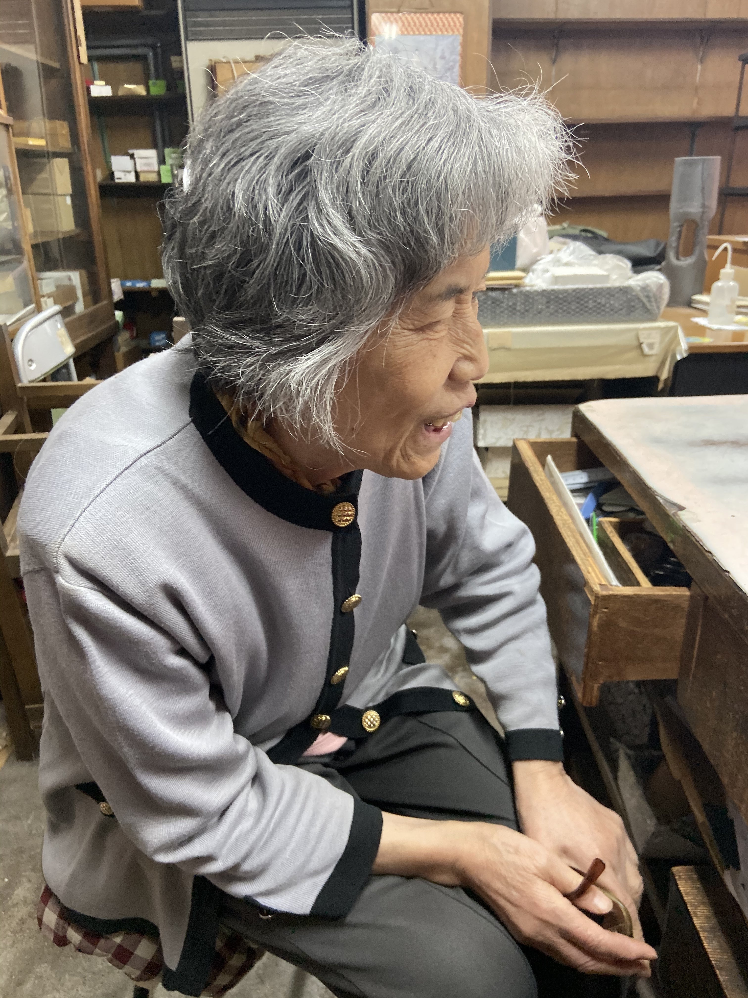 ゑり卯は、明治17年に創業し140年続く老舗の花器・茶道具・文化芸術教室です。1代目の瀧卯七郎さんが半襟や帯締め、かんざしなど、着物の小間物の販売をしていたことで、店名を「ゑり卯」と名付けられました。しかし、戦争でお店が全焼した事から業態を変え、今でも、4代目店主瀧喜久子さんが、お店を守り続けられていました。