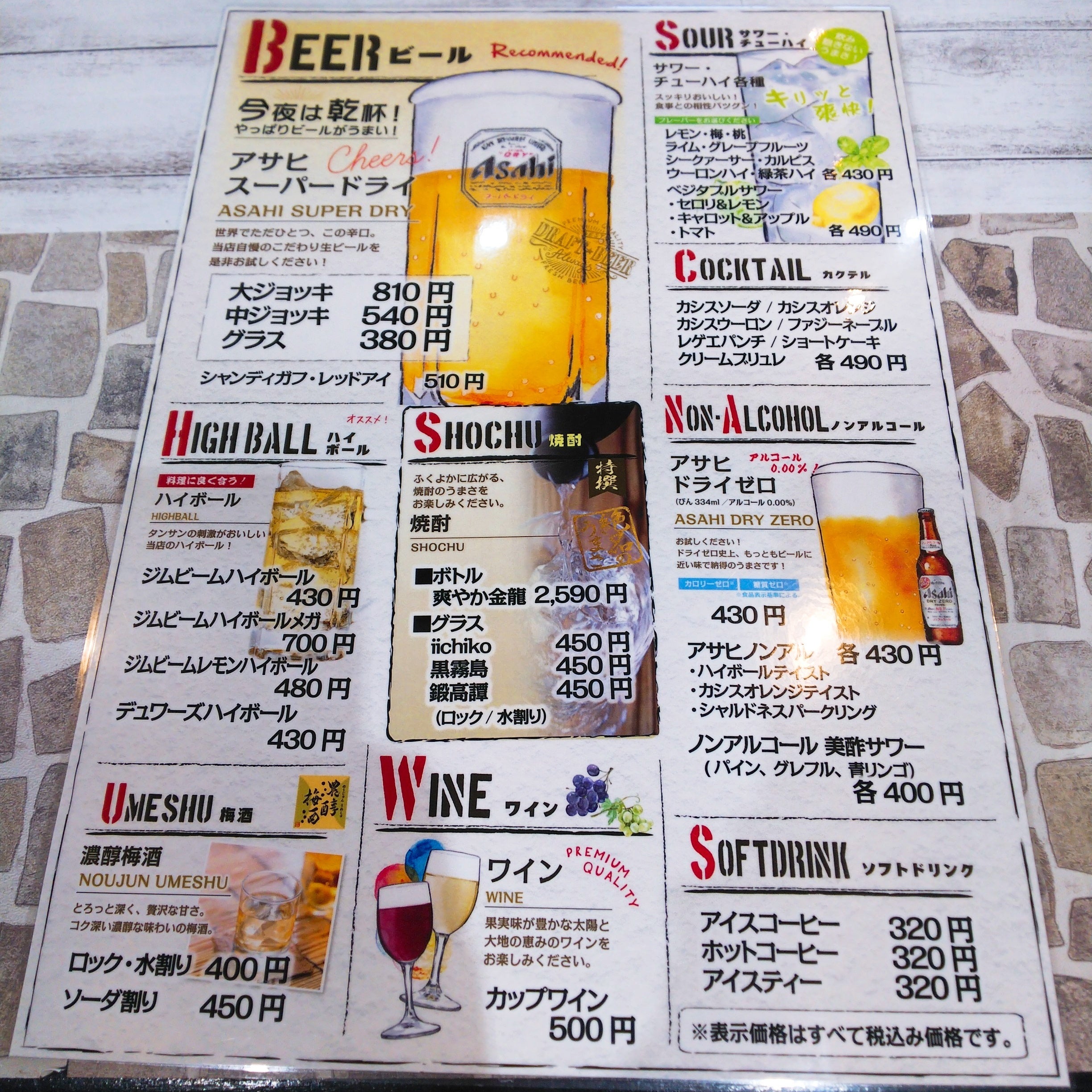 こちらが夜のメニューです!夜はカウンターがあるのでお一人様でも気兼ねなく飲めます。