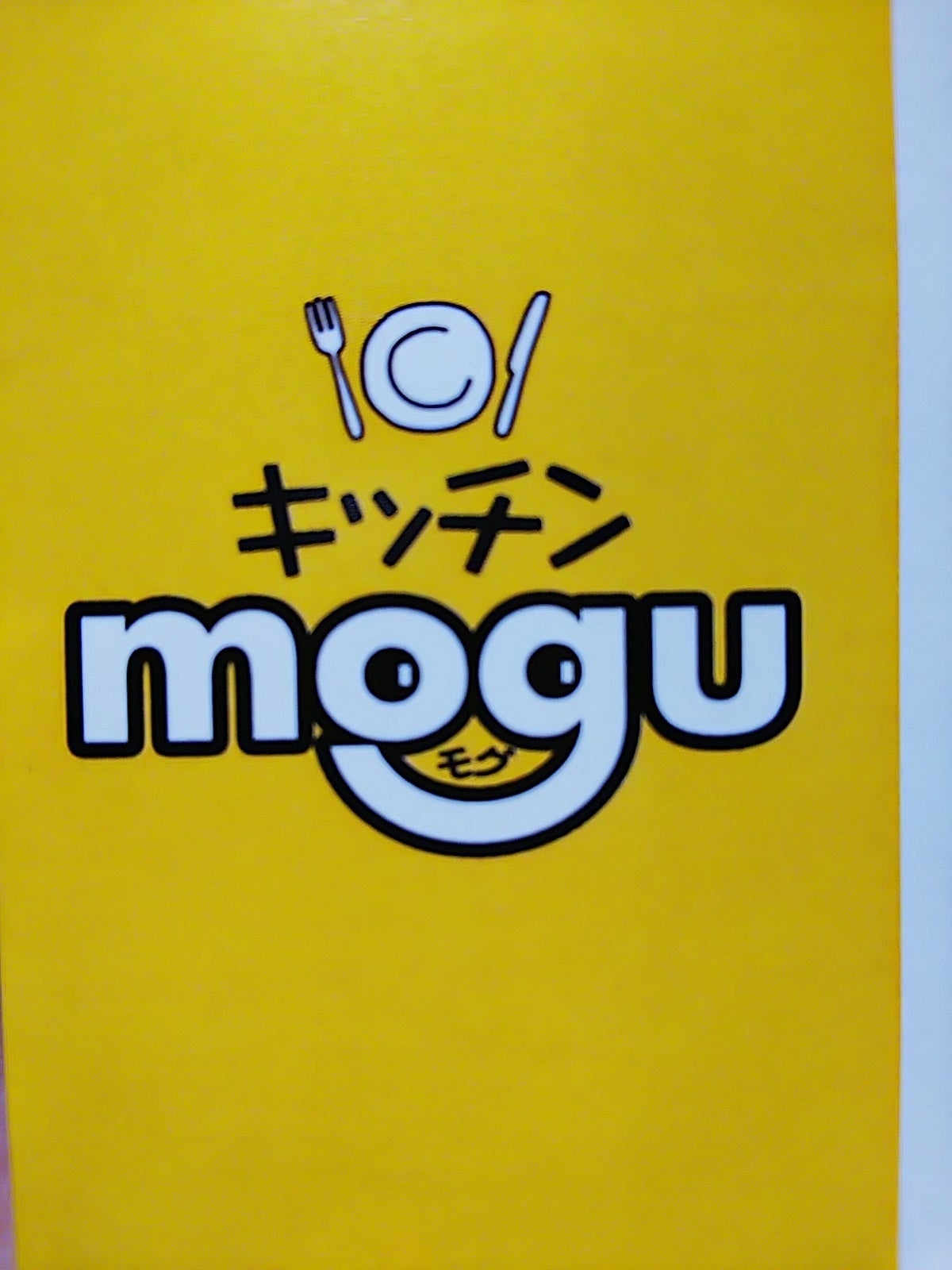 こちらが当店『キッチンmogu』のロゴです。このmoguというのは娘がずっと、もぐもぐキッチンが良いと言っていたのと、お客様にもぐもぐ食べて皆様を笑顔に出来たらと思いこのロゴと『キッチンmogu』と付けました。