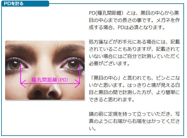 記入例:右-3.25 左-3.50 PD64 PCレンズでの製作希望