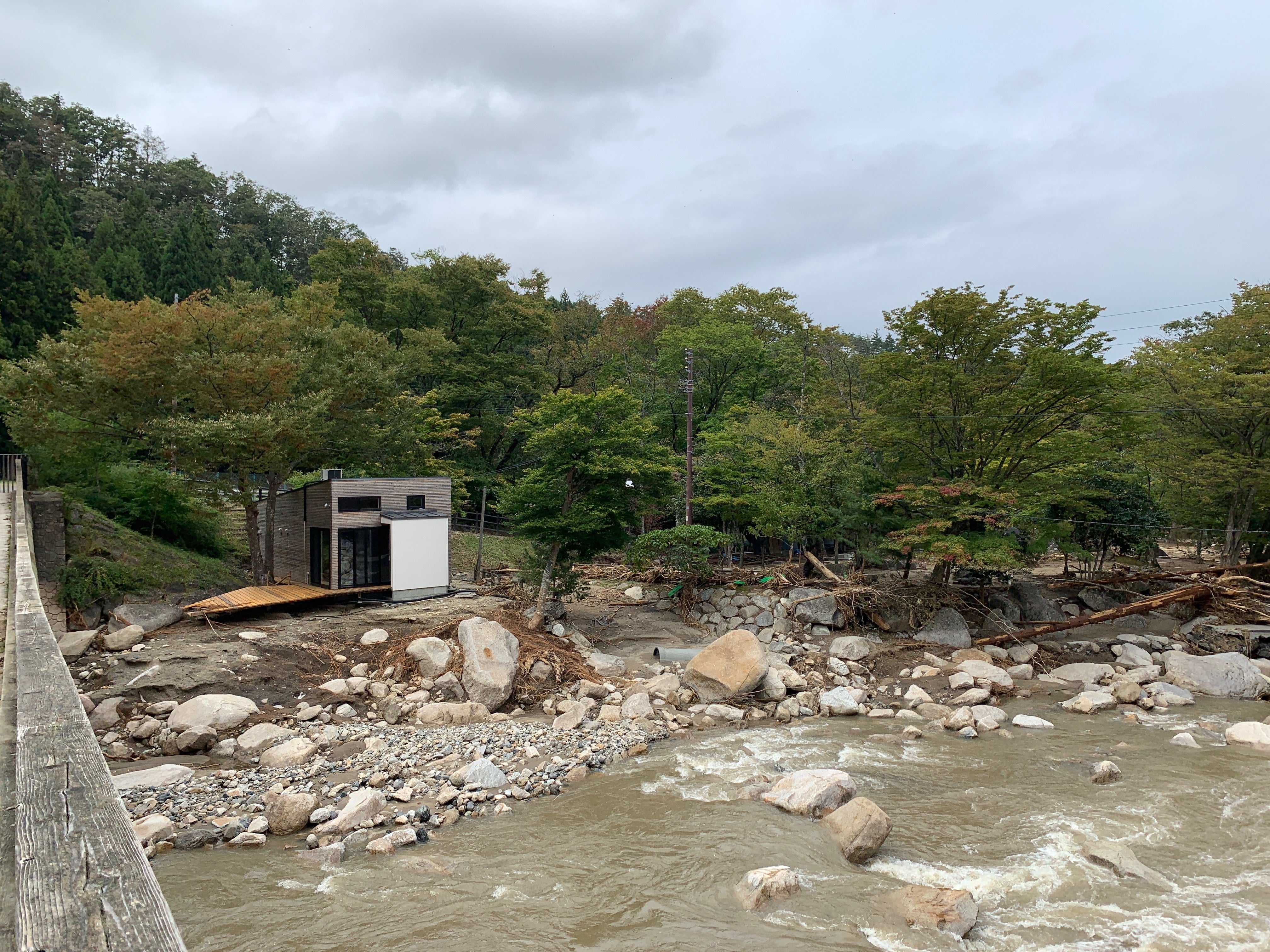 そんな中、MARUMORI-SAUNAのサウナ小屋は濁流に襲われたにも関わらず、床下浸水等の被害は受けましたが、奇跡的に建物が残りました。