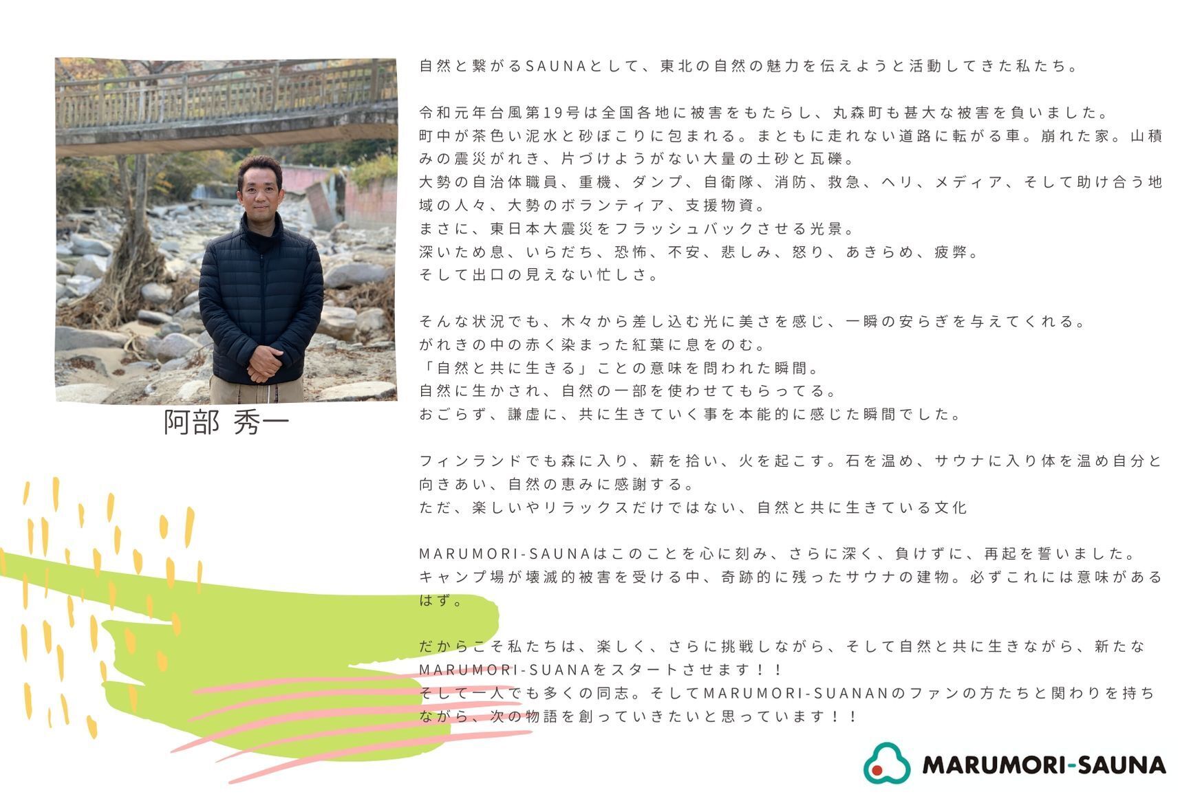 台風19号でMARUMORI-SAUNAが被害を受けた今、東北のサウナファンとして今できることは何だろうと考え、MARUMORI-SAUNAメンバーと一緒にこのクラウドファンディングを立ち上げました。