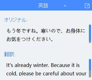 さらに翻訳された原文を表示する機能で、ご自身でお話しした内容がどのような内容で正しく認識されているかもご確認できます。