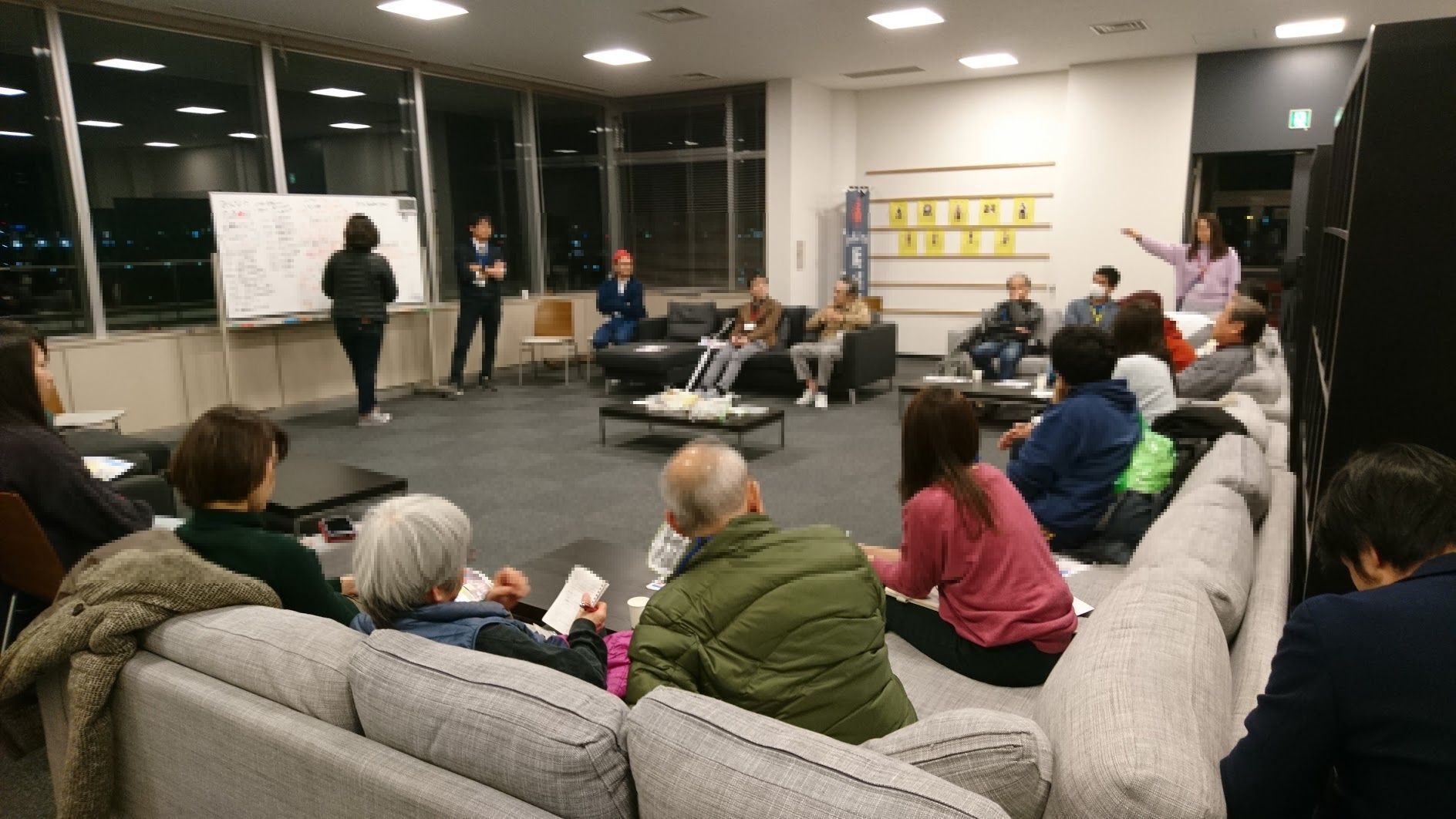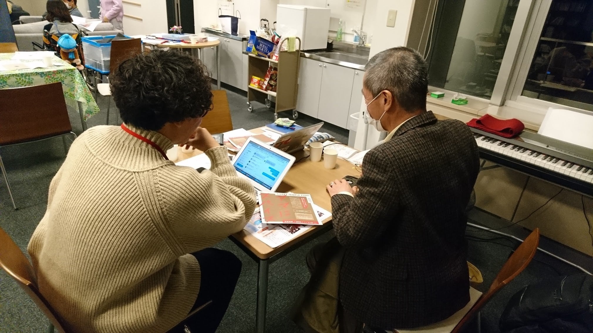 会場は西正寺を飛び出し、尼崎のひと咲きタワーという施設です。(ミーティング直後の FさんとMさんの様子です。)
