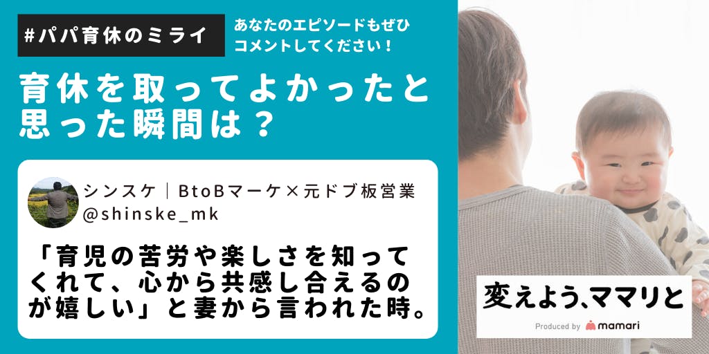 ママリでは、男性の育休について考えるきっかけをどんどん作っていきたいという思いから、ツイッターでのキャンペーンを始めます。