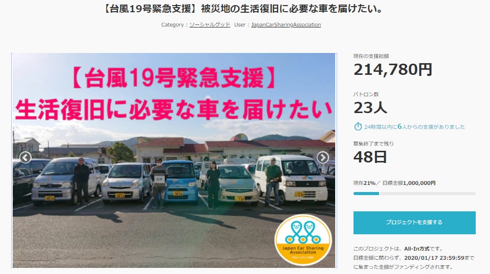 「台風当日、役場前に車を置き避難したが、夜になり車が水没していくのを呆然と見つめるしかなかった。車をお借りできて大変感謝しています。」とお話されていました。