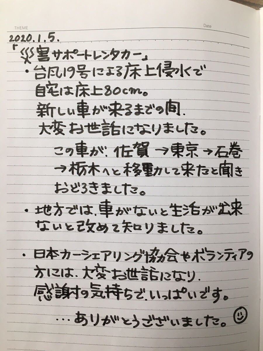 以前車の提供者さんからのお手紙を紹介しましたが、今回はご利用者さまのお手紙を紹介します。