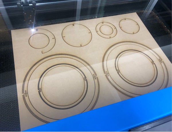 MDF(木質繊維を原料とする成型板)をレーザーカッターでカットし、骨組みを作成。