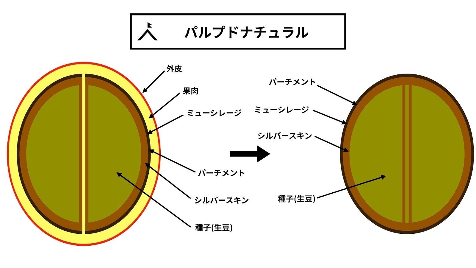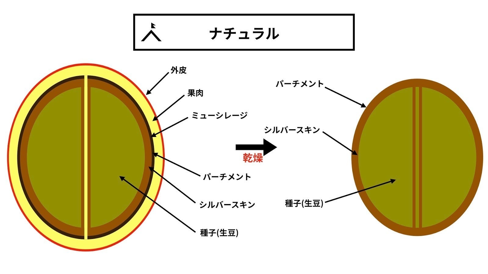 この方法はウォッシュドとナチュラルの間をとったような精製方法です。それはなぜかというと、ウォッシュドのように果肉は取るのですが、ナチュラルのようにミューシレージはそのまま残しておくからです。