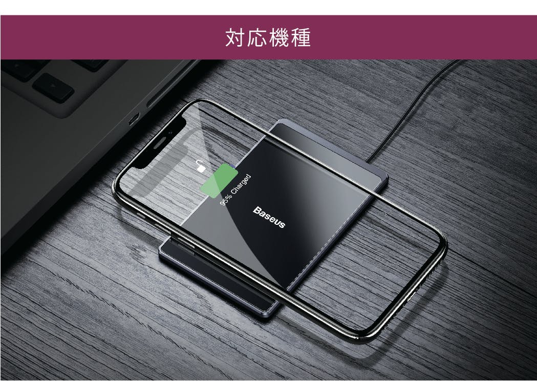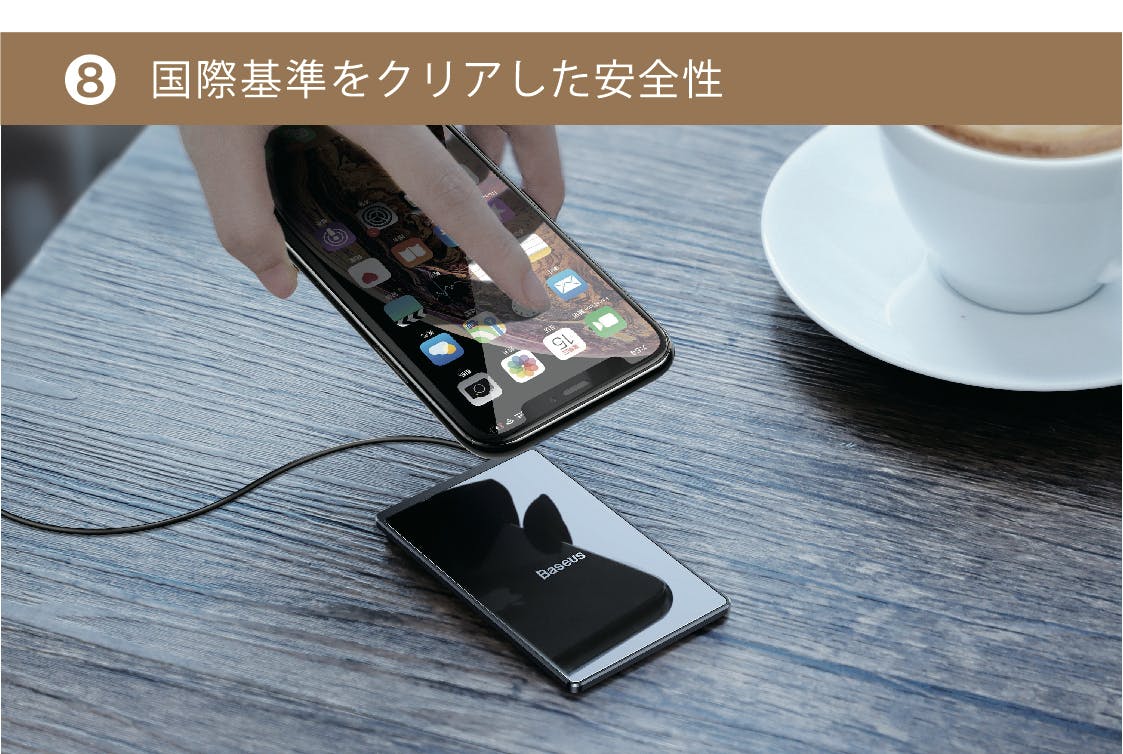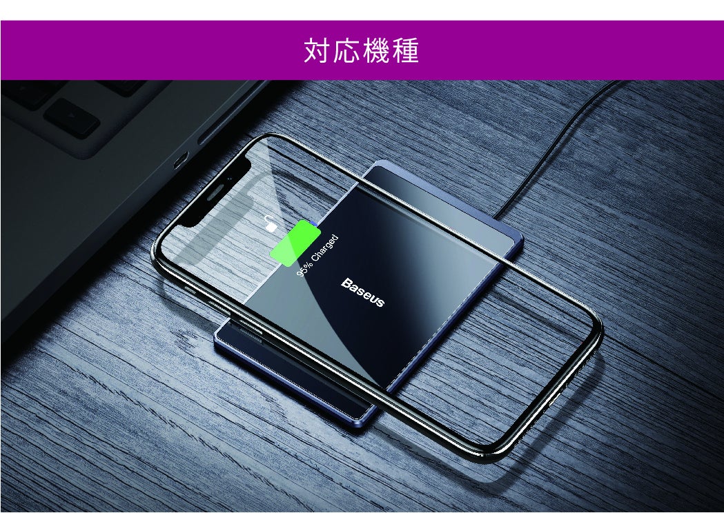 対応機種の一例としては、iPhone(11 / 11 Pro / 11 Pro Max / XR / XS / XS Max / X / 8/8 Plus)、Galaxy(S10+ / S10 / S9+ / S9 / Note 8 / Note 9 / S8 / S8+ / S7 / S7 Edge / S6 Edge / S6 Edge+ / Note 5)、Xperia(XZ2 / XZ2 / XZ2 Premium / XZ3)、Huawei(P30 / P30 Pro / Mate 20 Pro / Mate 20 RS )、Nexus(7 / 6 / 5 / 4)、Pixel(3 / Pixel 3 XL)、AQUOS(R3 / ZETA SH-06E)などです。その他各メーカーのQi対応機種があります。