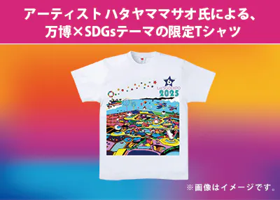 アーティスト ハタヤママサオ氏による、万博×SDGsテーマの限定Tシャツ