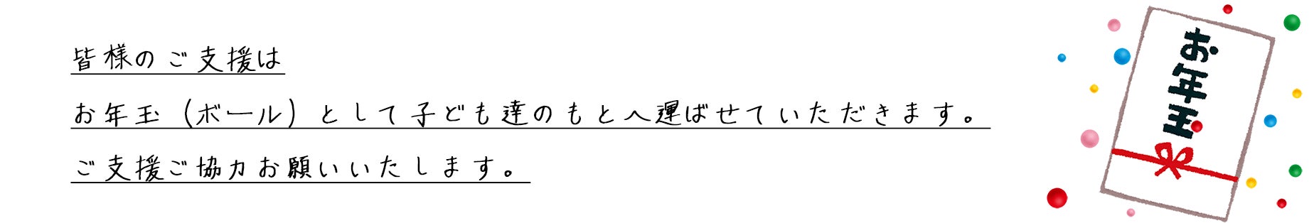 この経験から、沢山のボールを「お年玉」として全国の子ども達の元へ届けたい!(ボールだけに!笑)
